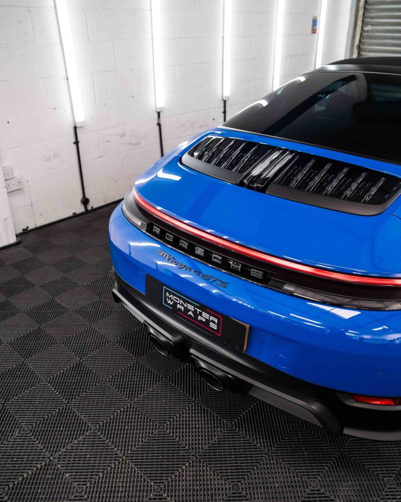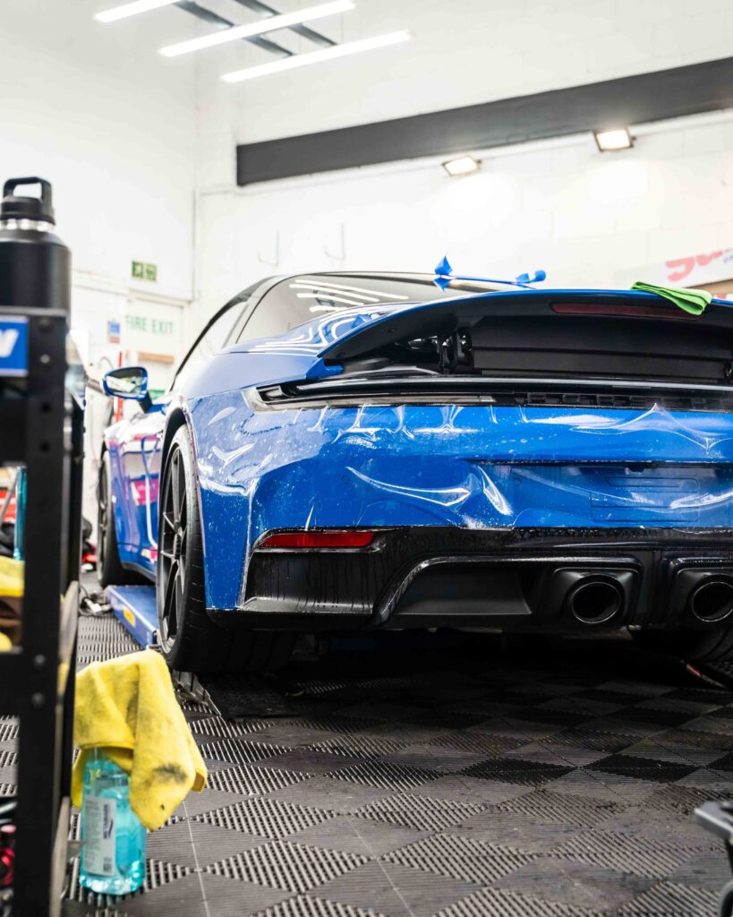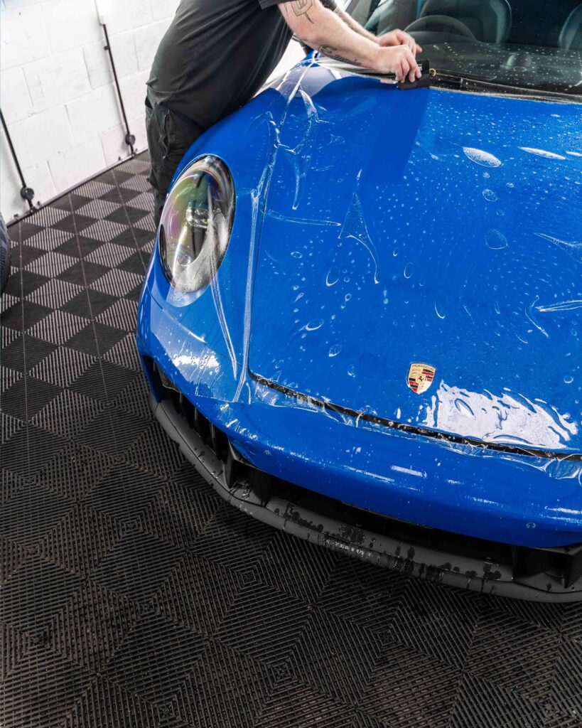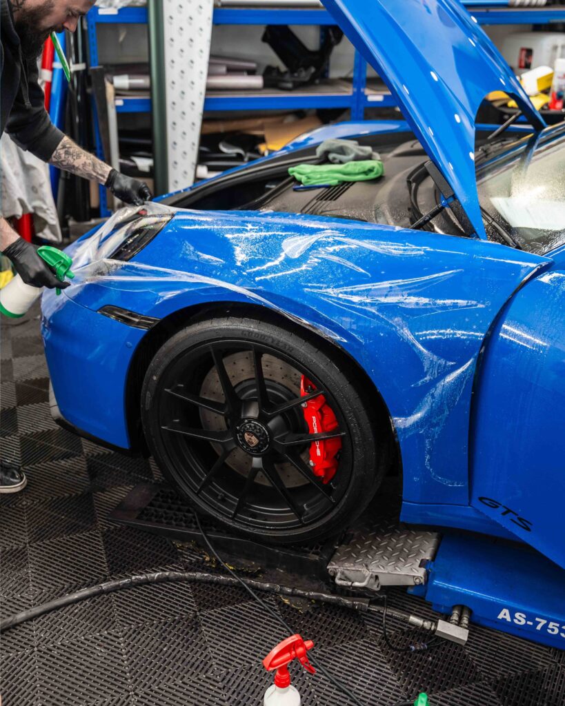Applicazione di una pellicola per protezione totale della carrozzeria (PPF) di altissima qualità, spessore 10 mil, su tutta la superficie della Porsche 911 GT3.