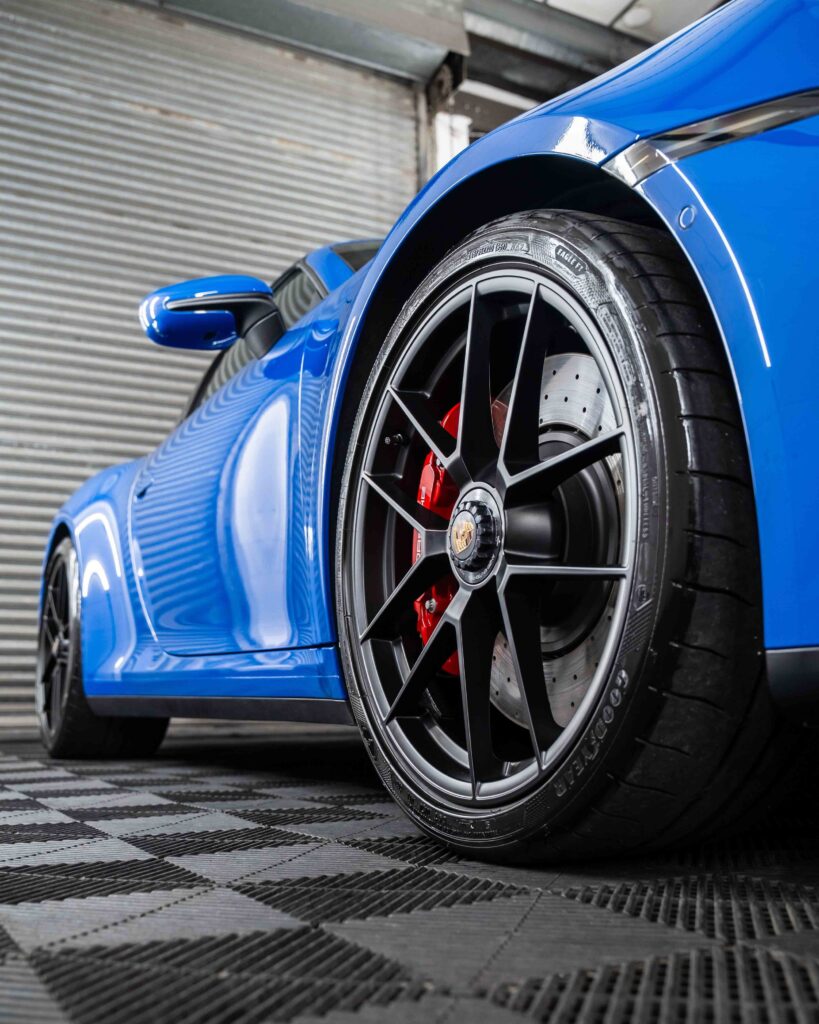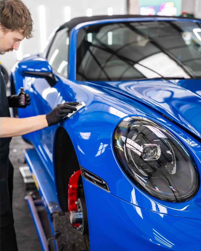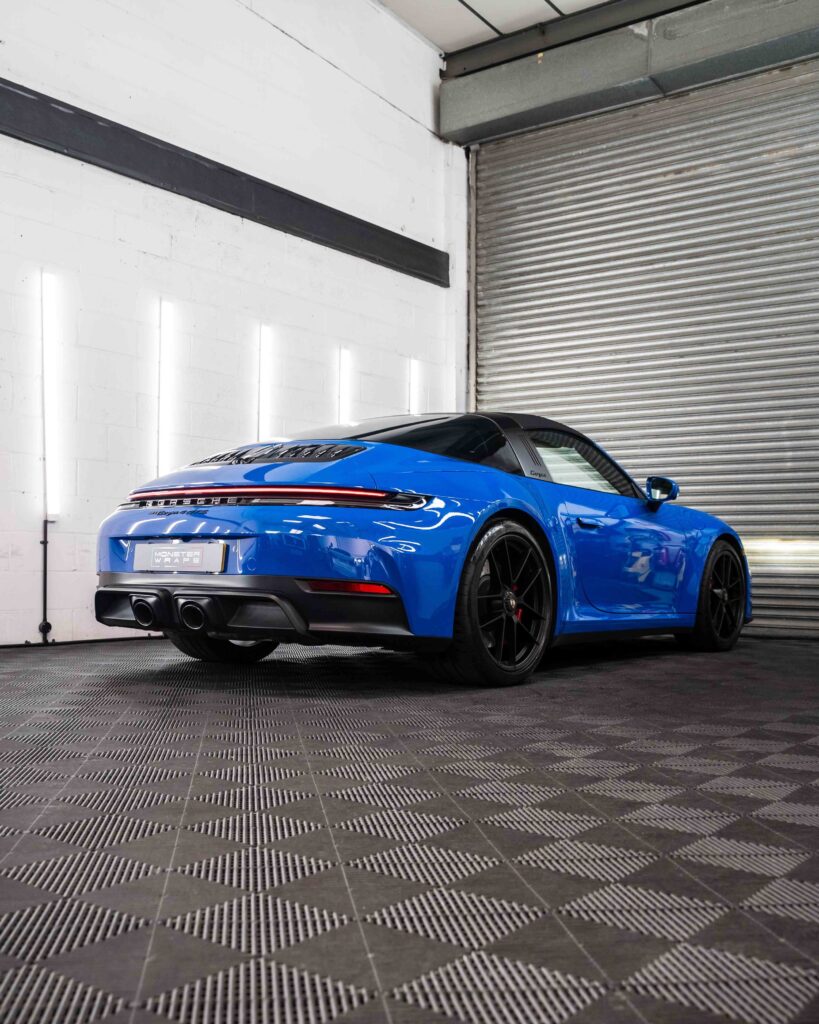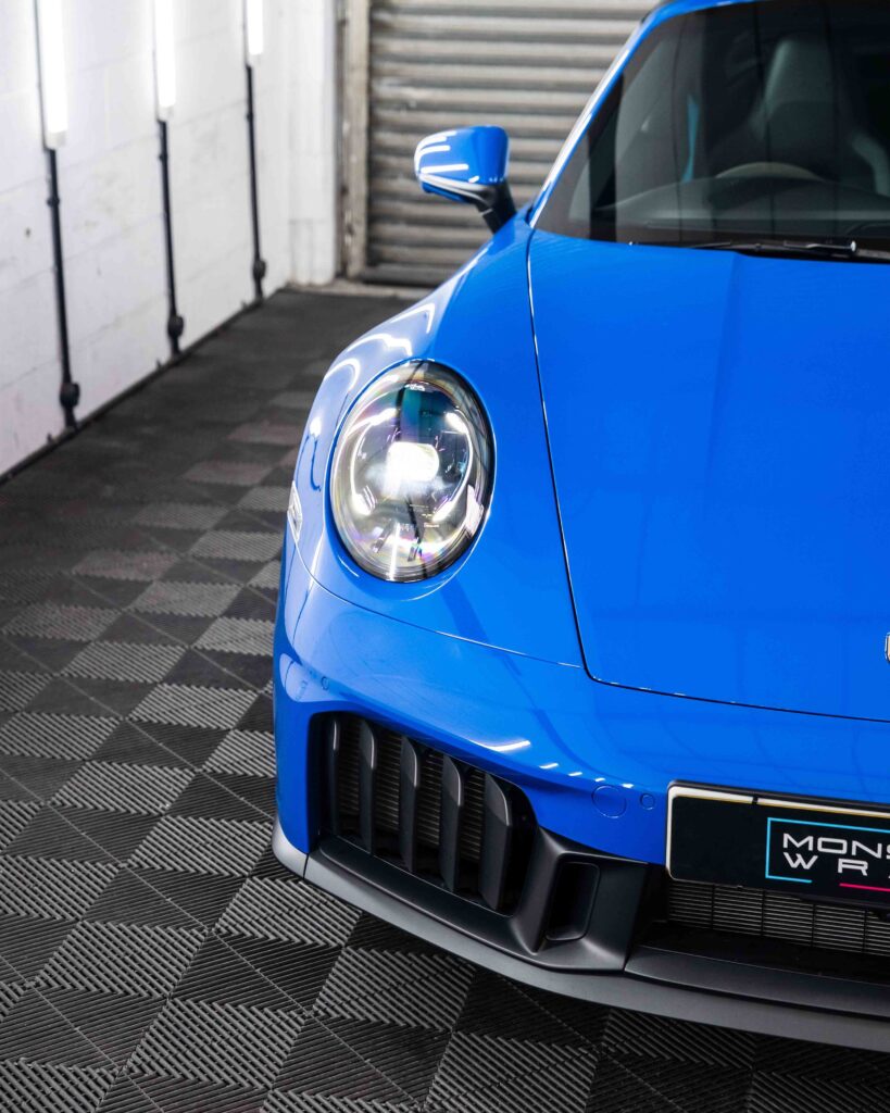 Applicazione di una pellicola per protezione totale della carrozzeria (PPF) di altissima qualità, spessore 10 mil, su tutta la superficie della Porsche 911 GT3.
